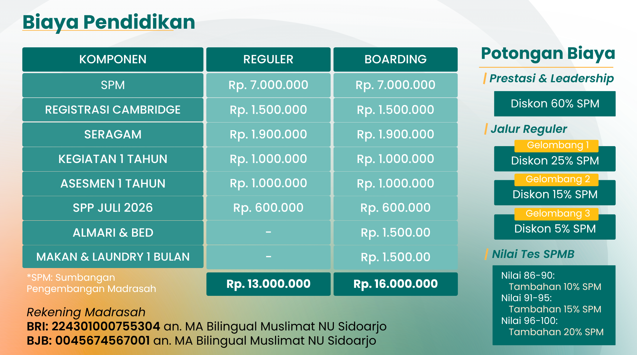 Pertanyaan-pertanyaan umum tentang SPMB MA Bilingual Muslimat NU Sidoarjo